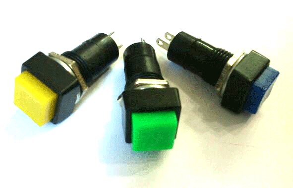 کلید فشاری چهارگوش 2 پایه-در سه رنگ سبز ،زرد ،آبی