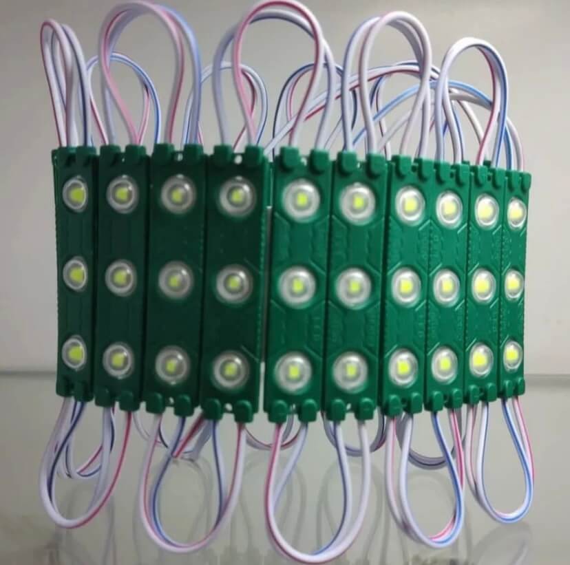 ریسه بلوکی داری 3عدد LED سبز لنز دار اینجکشن با چسب دو طرفه 12 ولت 1.5 وات